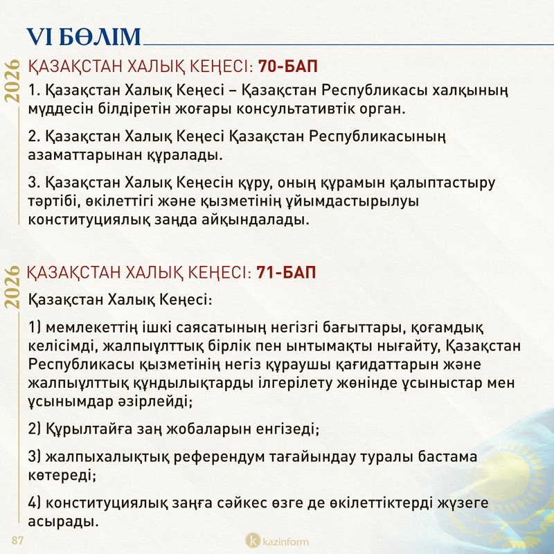 Жаңа Ата заңның VI бөлімі түгелдей Қазақстан Халық Кеңесіне арналған.