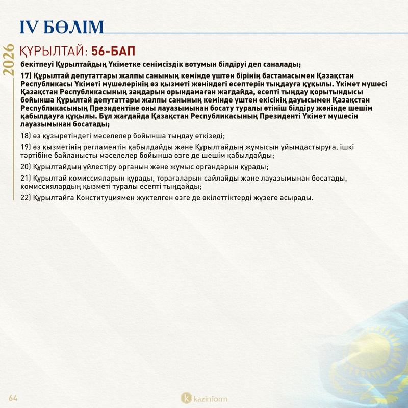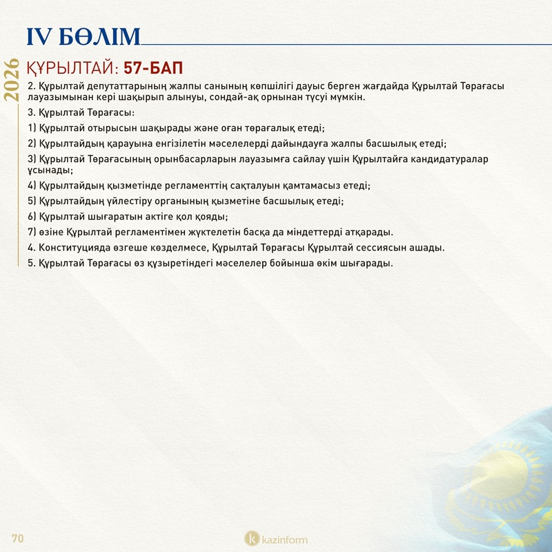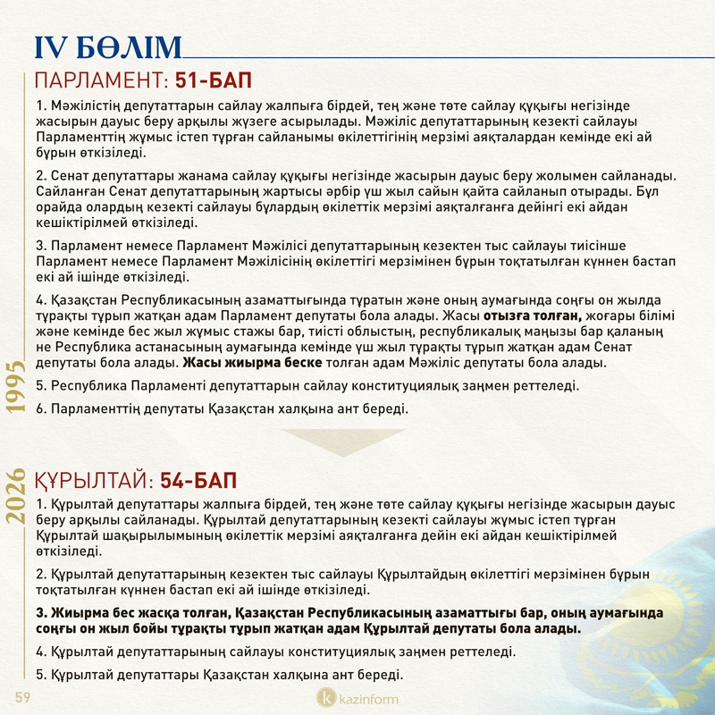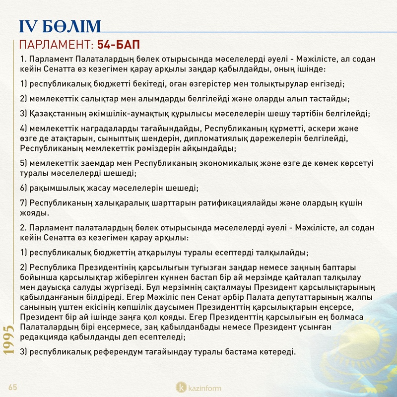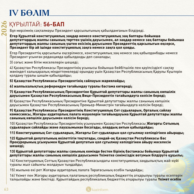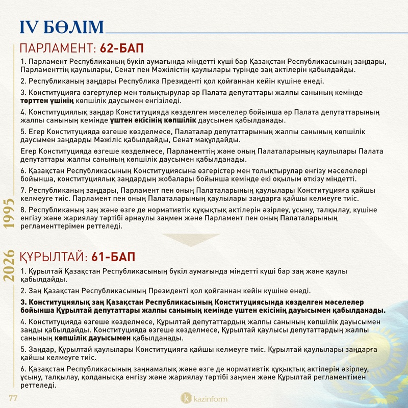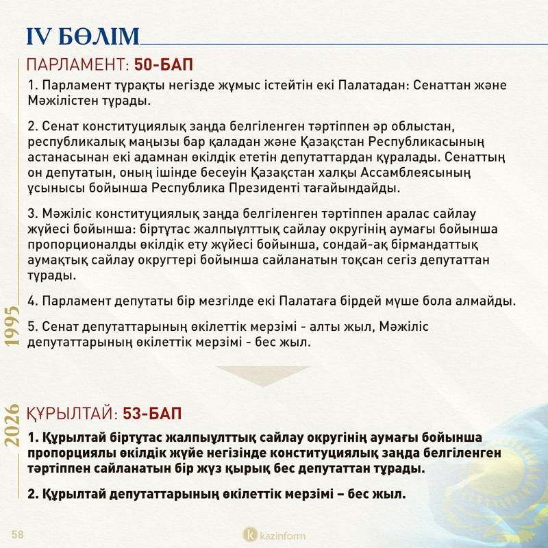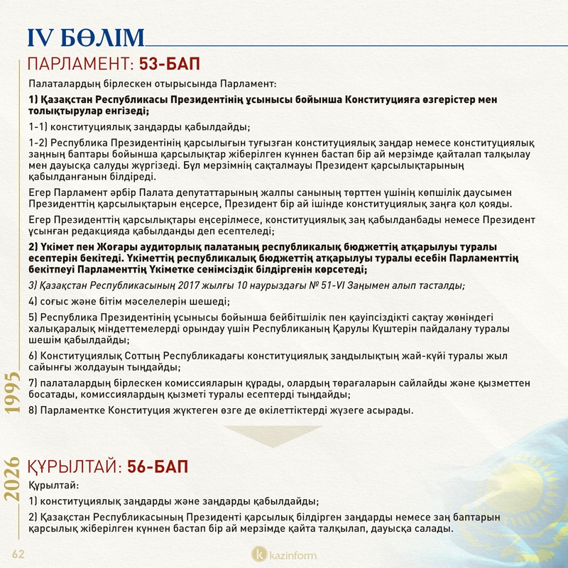 IV бөлім: Парламент/Құрылтай