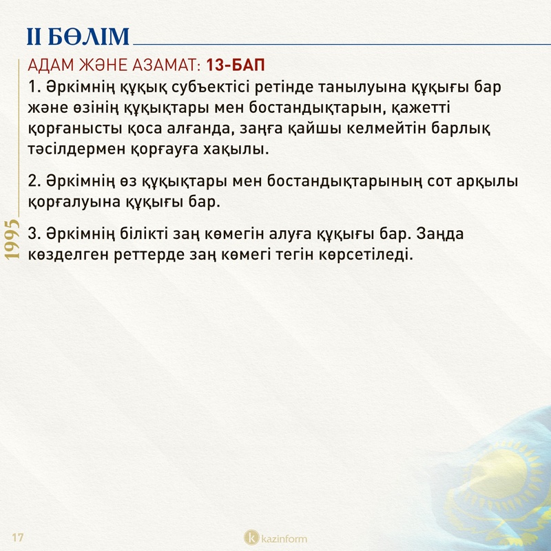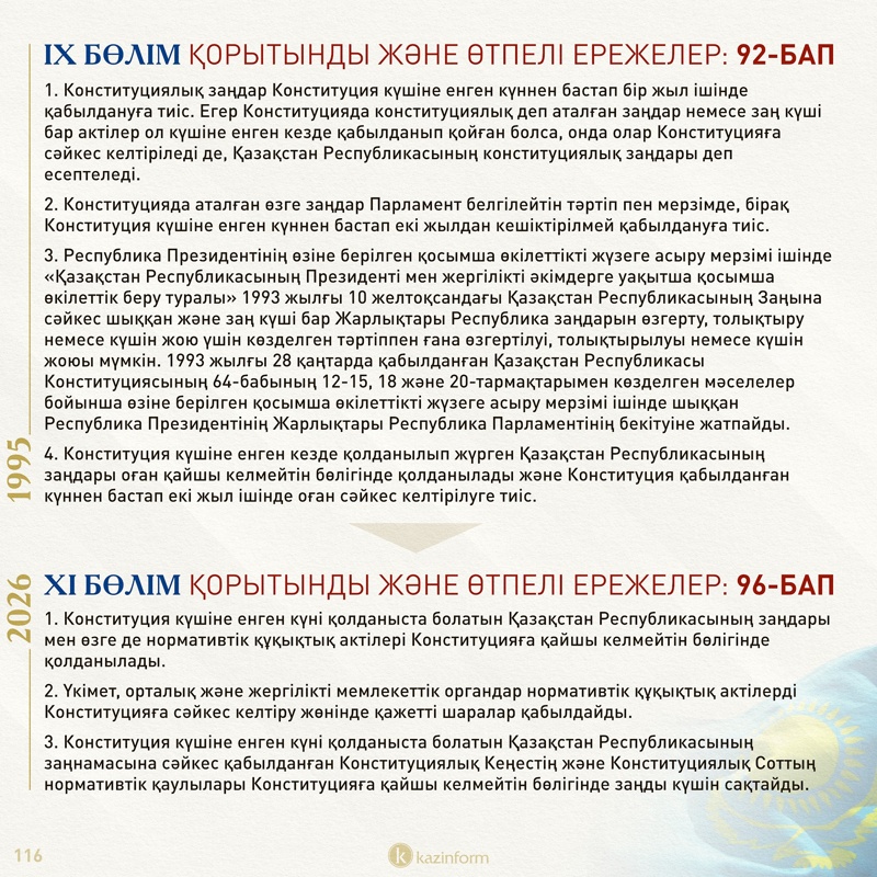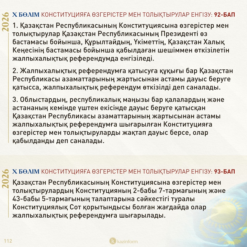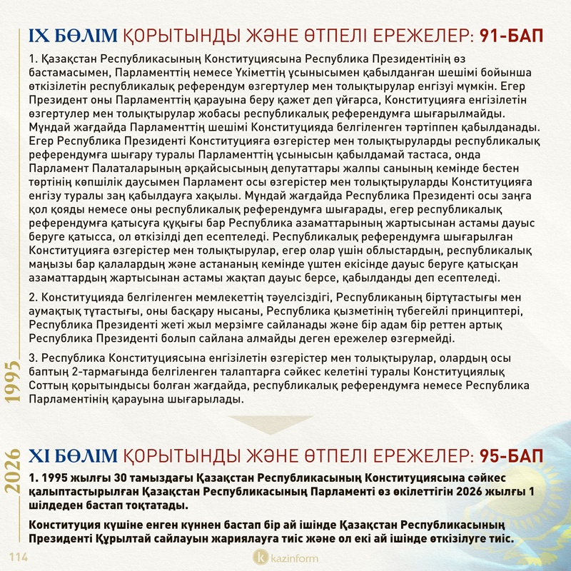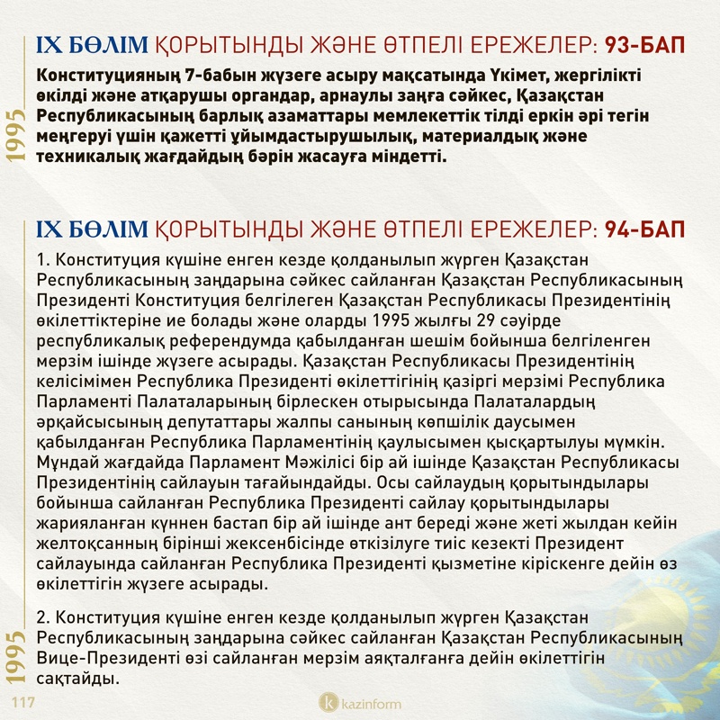 «Жалпыхалықтық референдумда Конституция қабылданған күн мемлекеттік мереке – Қазақстан Республикасының Конституциясы күні деп жарияланады».