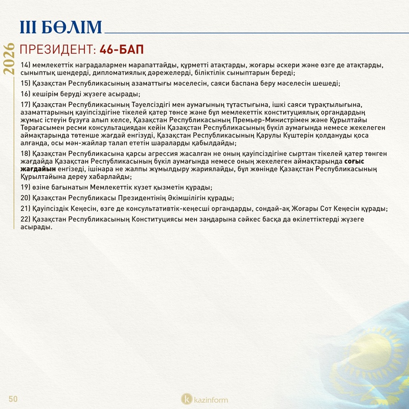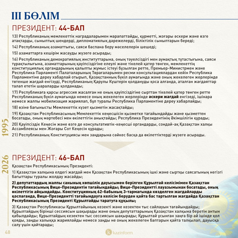 ІІІ бөлім: Президент
