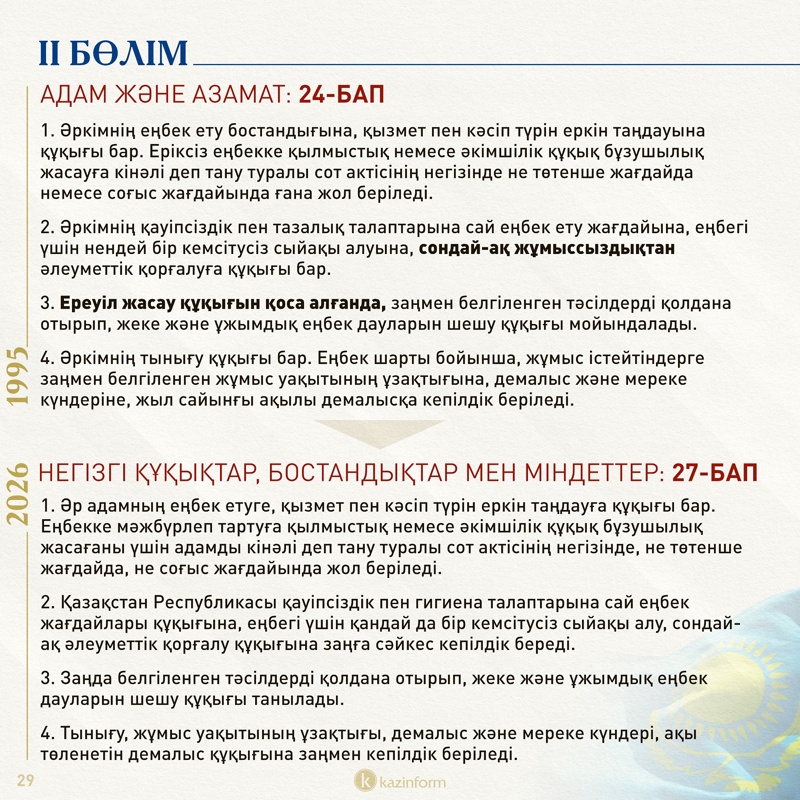 Азаматтардың еңбек дауын шешу құқығы туралы баптан «ереуіл жасау құқығы» туралы оралым түсіп қалған.