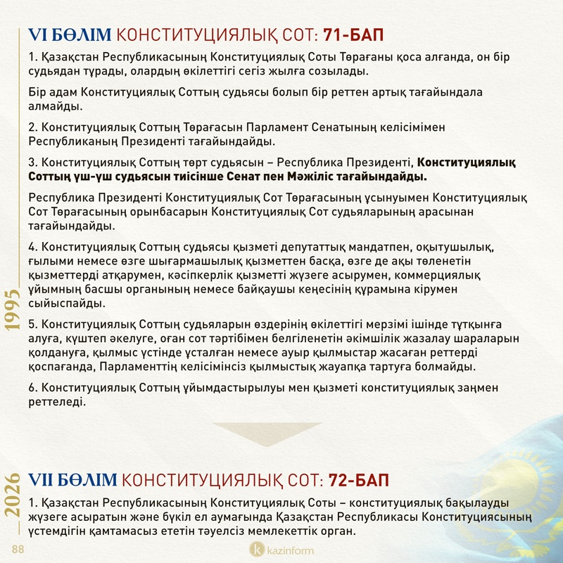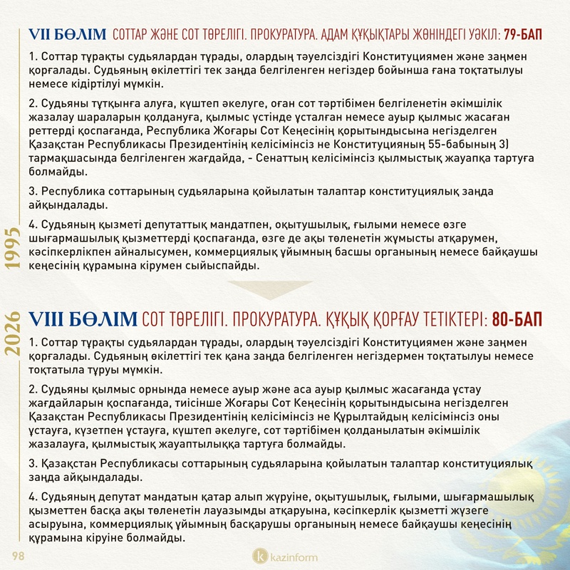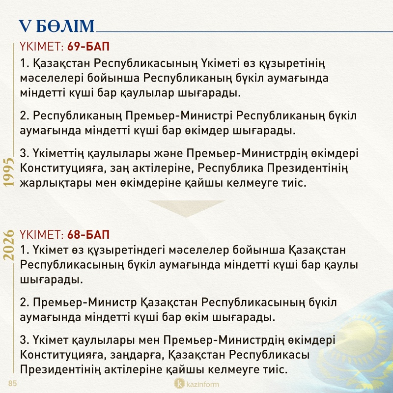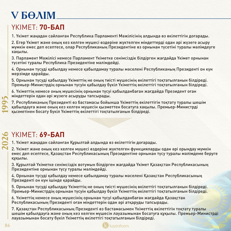Қазіргі конституциядағы осы норма жаңа Конституцияда қалып отыр. Демек, 30 жыл бойы Конституция күні ретінде тойланып келген 30 тамыз тарих қойнауына енбек. Жаңа Конституция күні қай күнге белгіленетінін уақыт көрсетеді.