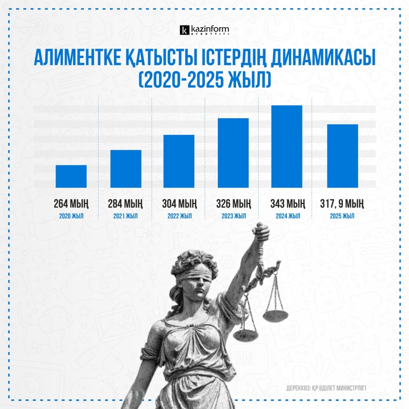 Әділет министрлігінің деректеріне сәйкес, 2025 жылы жеке сот орындаушыларының өндірісінде алименттік міндеттемелерге қатысты 317,9 мың іс болған.