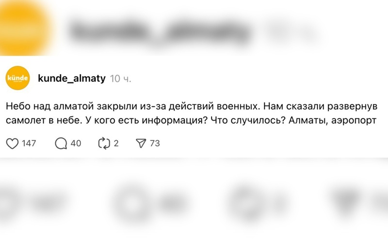 Әуежайдың баспасөз қызметінің мәліметінше, Алматы халықаралық әуежайы бұл уақытта да штаттық режимде жұмыс істеген және қазір де қалыпты жағдайда қызметін жалғастырып жатыр. Алматының әуе кеңістігі жабылған жоқ.