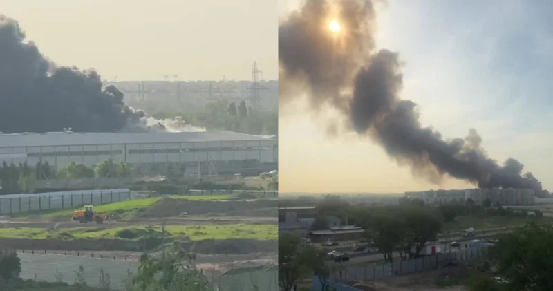 Алматы маңындағы картон зауытында ірі өрт сөндіріліп жатыр видео