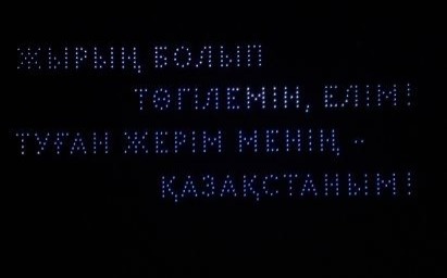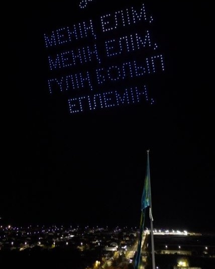 Көкке көтерілген 550 дрон ел тарихын, бірлігін және рухын айшықтаған әсерлі көріністерді ұсынды. Шоудың ең шарықтау шегі — дрондар арқылы Әнұранының сөздері аспанда жарқырап жазылуы болды.