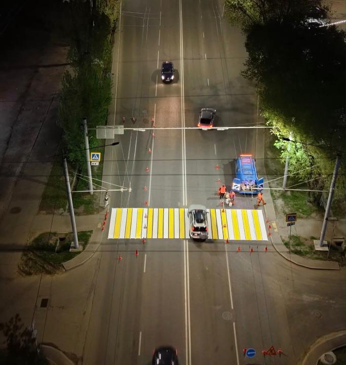 Жалпы жұмыс көлемі кемінде 300 мың шаршы метр жол таңбасын қамтиды. Таңбалар негізінен түнгі уақытта сызылады. Бұл көлік қозғалысына түсетін жүктемені азайтып, жұмысты жедел әрі тиімді орындауға жағдай жасайды.