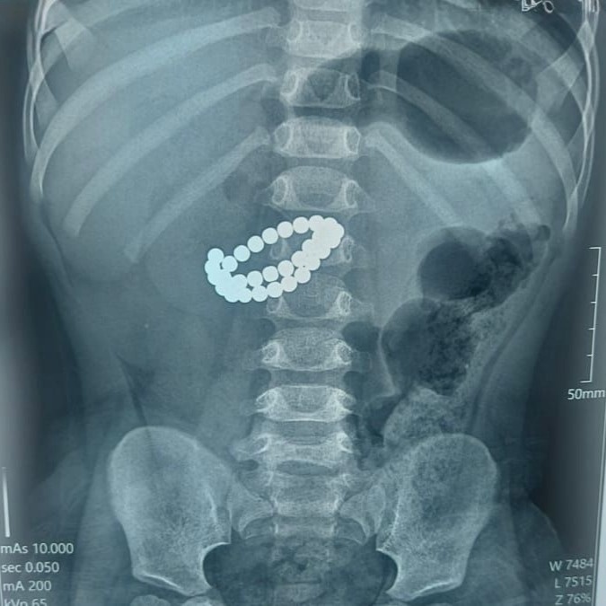 Қалалық қоғамдық денсаулық сақтау басқармасының хабарлауынша, қабылдау бөліміне 1 жас 9 айлық бала өте ауыр жағдайда жеткізілген. Тексеру нәтижесінде дәрігерлер «ішектегі бөгде заттар – 31 магнит, жіңішке ішектің көптік тесілуі, жайылған нәжістік перитонит» диагнозын қойды.