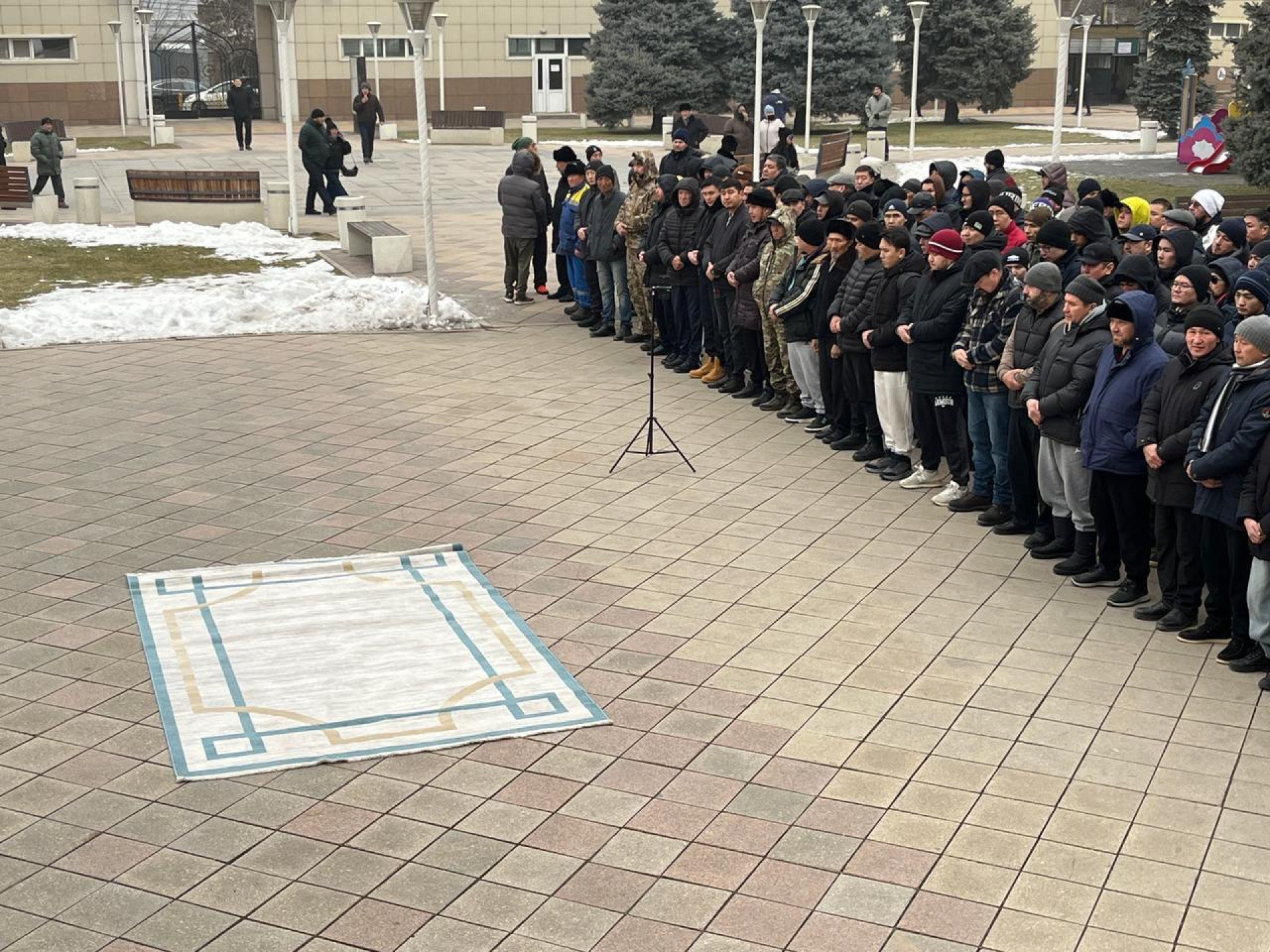 Қоштасу рәсімі таңғы сағат 10:00-ге жоспарланғанымен, мешіт маңына адамдар ерте жинала бастады. Таңнан бастап бұл аумақта адам қарасы көп. Көлік қою қиынға соққандықтан, көпшілік көліктерін алысқа қалдырып, жаяу келген.
