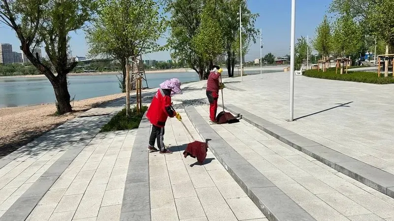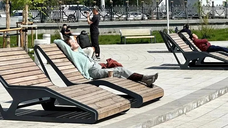Таңертеңнен бері жағалау маңында коммуналдық қызметкерлер жұмыс істеуде. Олар жаяу жүргіншілер жолын сыпырып, қоқысты жинап, аумақты ретке келтіріп жатыр. Кей жерлерде төселген тастарды дымқыл шүберекпен тазалап жүргендерін көруге болады. Жалпы, аумақты жылы маусымға және келушілердің көбеюіне белсенді түрде дайындап жатқаны байқалады.
