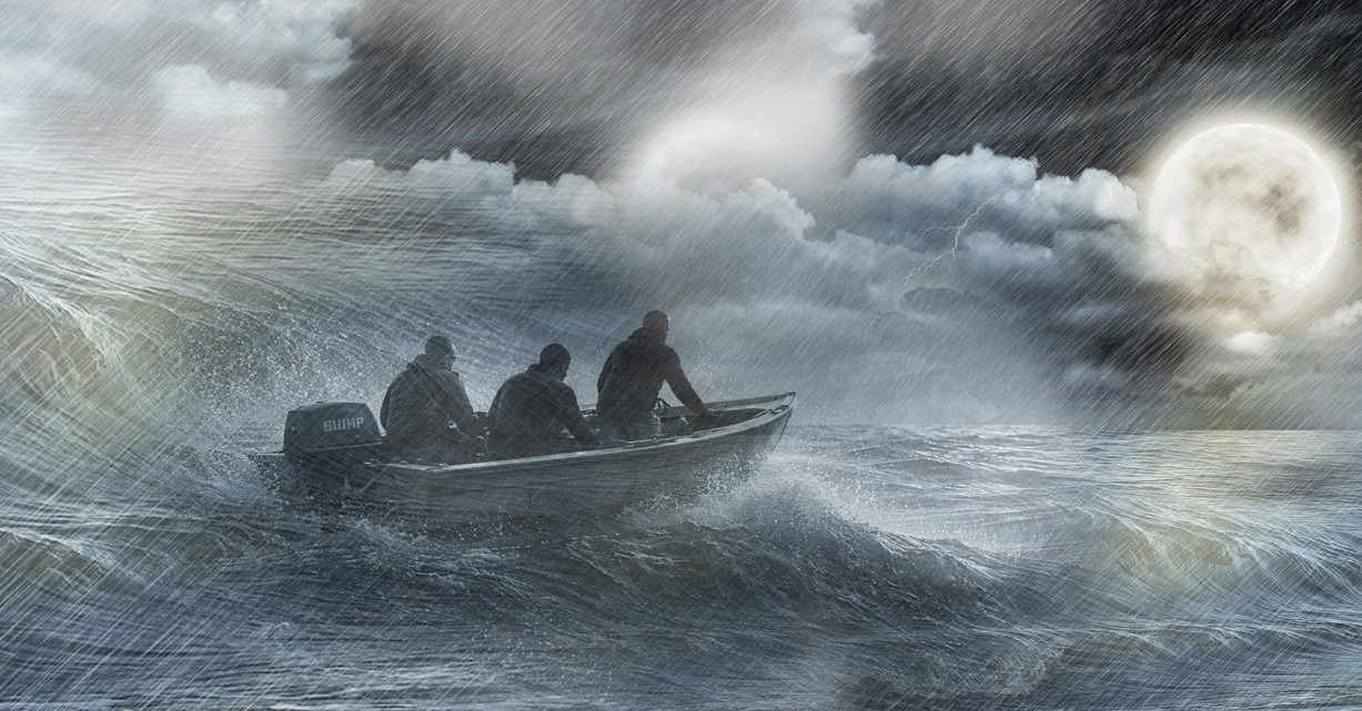 Қамысқа «әне-міне жеттік-ау» дегенде толқынның екпінінен су шашырап жүргізбеді. Қасымдағы Олег Федоров арттағы Сырымның қалып қойғанын айтты. Бұрылып, артыма қарап едім, фонарикпен қолын көтеріп айқайлап жатыр екен. Тастап кетуге дәтім шыдамады. Кері бұрылып, қасына келіп, не болғанын сұрадым. Ол моторға су құйылып сөніп қалғанын айтты. Сол жерде менің моторыма толқын су құйылып, бұл да сөнді де қалды. Екі қайықты бір-біріне байлап, таң атқанша жел басылар деп ықтық. Сол ыққаннан жел алты тәулік бойы басылмай, біресе батысқа, біресе шығысқа, бірде оңтүстікке немесе керісінше күндіз-түні соғып, таудай толқындармен бірге ығуға тура келді. Ұйқыны, ас пен шөлді апта бойы ойлауға мұршамыз болған жоқ, болуы да мүмкін емес еді. Таудай толқындар биіктігі үйдей. Шулаған теңіз дауысы, бәрі адам айтқысыз үрей. Құтқармас ажал торын құрып тұр.