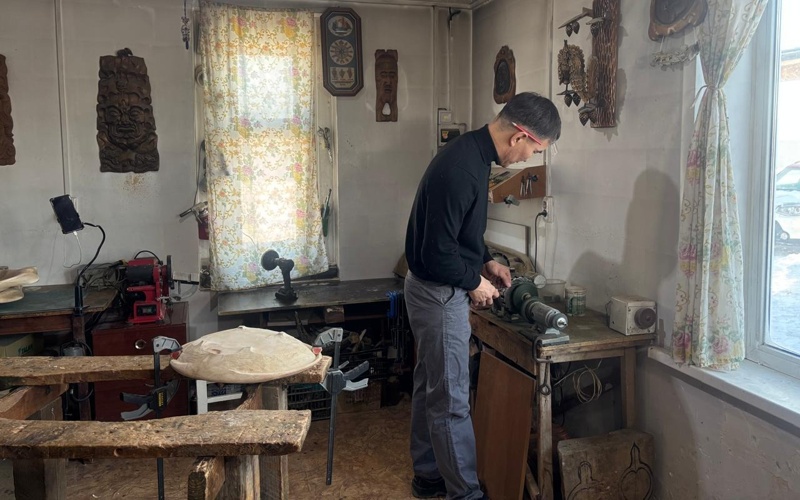 Болатбек Қалдыровтың қолындағы әр сайман - ойдың жалғасы, әр қимылы - табандылық пен төзімнің көрінісі. Ол ағашты асықпай, бабымен ояды. Себебі бұл өнерде дәлдік пен сабыр ғана нәтиже береді.
