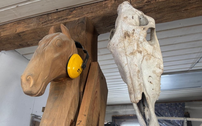 - Шеберханада ілініп тұрған бұл бас сүйектер бұйым жасау барысында қалыптан ауытқымау үшін керек. Мысалы, сүйектің құрылымына қарап, көзінің, құлағының, танауының қай жерде орналасқанын, қандай ойықтары барын еске түсіреміз. Жұмыс барысында кейде ұмытып кететін сәттер болады, сондықтан осындай үлгілер бізге бағыт-бағдар береді.