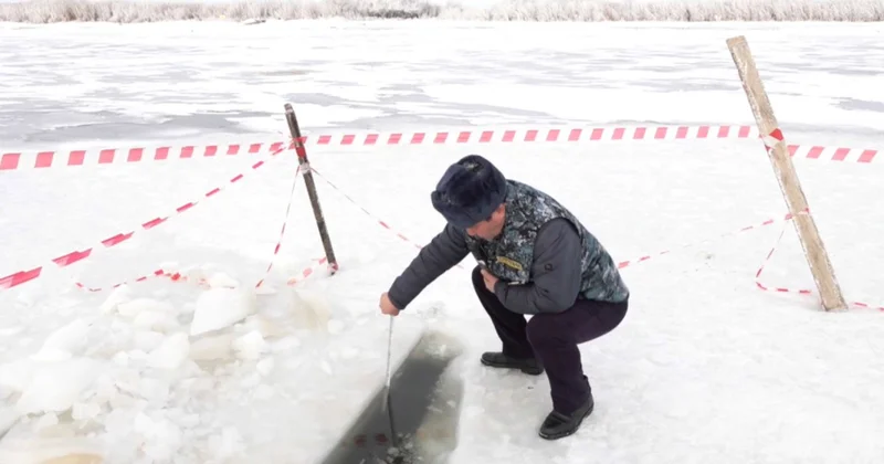 Атырау облысындағы өзен-көлдерде мұз қалыңдап, балыққа оттегі жетпей жатыр.