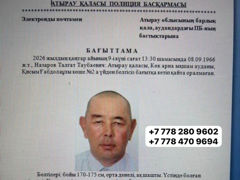 Атырауда 59 жастағы азамат 4 күннен бері табылмай жатыр