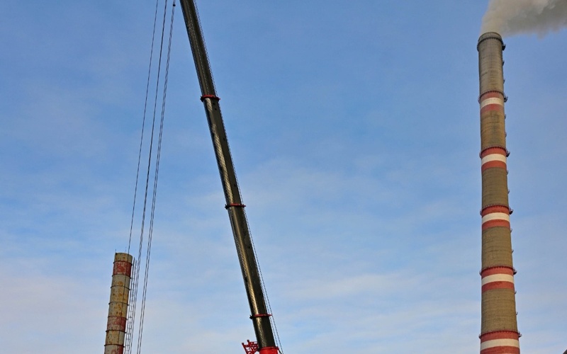 Екібастұздағы МАЭС 1 стансасында ақау шыққан мұржаның жанына жаңасы тұрғызылып жатыр