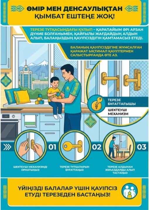 Ведомство мәліметінше, бастаманың мақсаты — жазатайым оқиғалардың алдын алып, балалардың терезеден құлауына жол бермеу.
