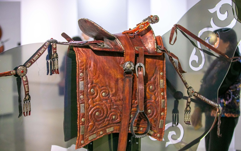 Әсіресе, жылқы мүсіні көпшіліктің назарын аударды. Ондағы ат әбзелдері – Қарағанды облысының Қарқаралы ауданындағы б.з.д. VII-VI ғасырларға тиесілі Талды-2 қорымынан табылған бұйымдардың реставрациясы.
