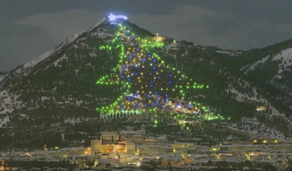 Италиядағы Губбио қаласының жанындағы Ингино тауы жыл сайын алып жарық инсталляциясына айналды. Бұл ерекше өнер туындысының контурлары шатыр тәрізді шыршаның сұлбасын құрайды.