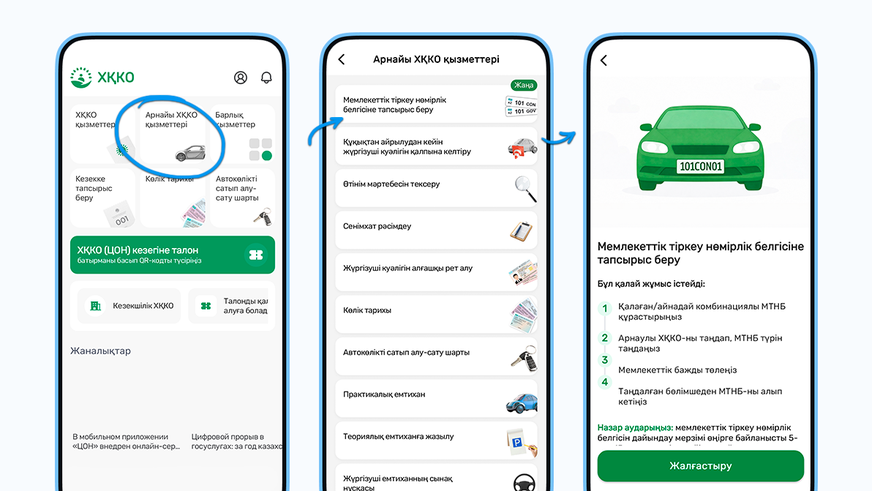 Көлік жүргізушілері үшін қалаған цифрлар мен әріптер комбинациясы бар мемлекеттік нөмірге тапсырыс берудің жаңа тәсілі пайда болды. Енді ел азаматтары автокөлік нөміріне «ХҚКО» мобильді қосымшасы арқылы тапсырыс бере алады, деп хабарлайды Egemen.kz.