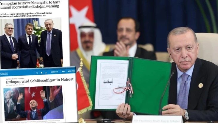 Түркия Президенті Режеп Тайип Ердоған Мысырдың Шарм-эш-Шейх қаласында Газа секторында атысты тоқтату үшін өткен тарихи саммитте шешуші рөл атқарды, деп хабарлайды Hürriyet газеті..