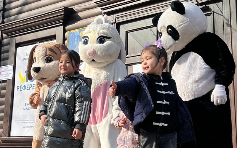 Балалардың сүйікті кейіпкерлері бейнесіндегі ұзын бойлы қуыршақтар қонақтарды жылы жүзбен қарсы алып, олармен естелікке суретке түсті. Ересектер дауыс беруге қатысып жатқан кезде балалар түрлі-түсті қуыршақтар мен ертегі кейіпкерлері қатысқан қызықты көріністі тамашалай алды.