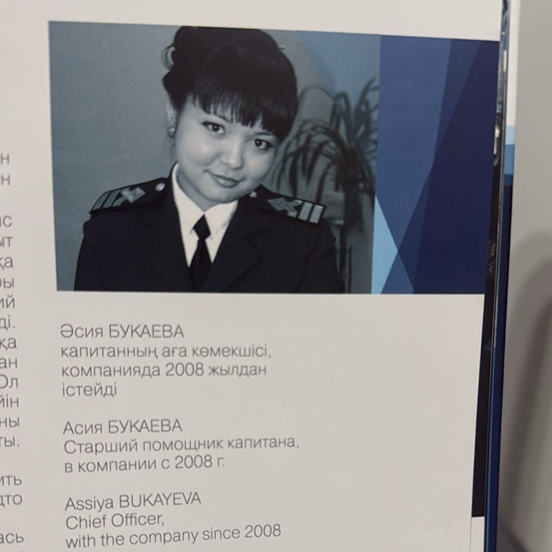 — Алғашқы кезде әйел адам теңізде ерлермен тең дәрежеде жұмыс істей алмайды деген көзқараспен жиі бетпе-бет келдім. Мұны жеңу үшін кәсібилікке мән беріп, өз білімім мен қабілетімді көрсеттім. Бұрын күмәнмен қараса, бүгінде Қазақстан флотында әйелдерді тең құқылы маман ретінде қабылдайды. Қуантатыны бұл жолды таңдаған қыздар саны артып келеді. Ең қиыны кеме, экипаж және жүктің қауіпсіздігіне деген жоғары жауапкершілік. Әсіресе күрделі ауа райы мен навигациялық жағдайда әр шешім дәл болуы керек. Ал, теңіздегі еркіндік сезімі және сәтті орындалған маршрут мені одан сайын шабыттандырады, — дейді Әсия.