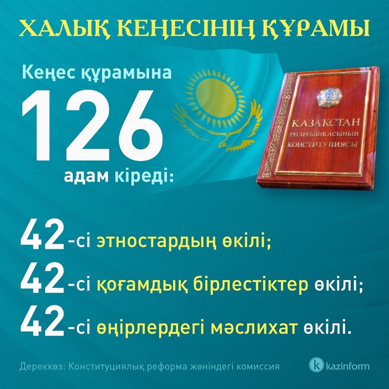 Сонымен, Халық кеңесінде жоғарыда атаған екі қоғамдық институтың жұмысы біріктіріледі. Бұрын атқарған қызметі жаңа сипатқа еніп, Кеңес құрамында қайта топтаспақ. Мысалы, болашақ Халық кеңесінің құрамында 126 мүше болады. Оның ішінде 42 мүшесі елдегі этностардың өкілдері болса, 42-сі қоғамдық бірлестіктерден, тағы 42-сі өңірлердегі мәслихаттардан қосылады.