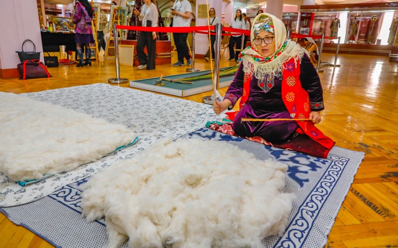 Тараздық шебер Гүлмира Тоқабаева ұршық иіру өнерін таныстырды. Ол ұршық жүнді иіріп, жіпке айналдыруға арналған ыңғайлы құрал екенін түсіндірді.