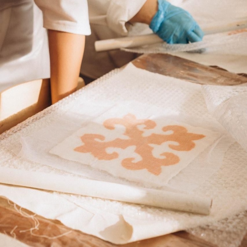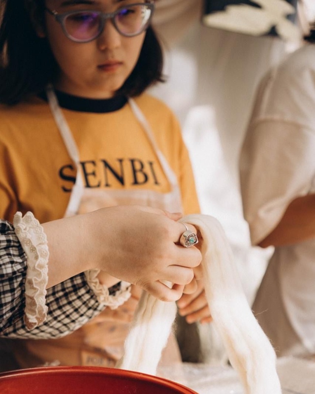 — Киіздің сапасы ең алдымен жүннің қалай салынғанына байланысты. Әр тал жүнді ретімен, өлшеммен, тіпті граммен есептеп орналастыру қажет. Егер сол сәтте ұқыпсыздық танытсаң, кейін оны түзету өте қиын. Сондықтан мен үшін ең маңыздысы — жүнді сезіну, оның құрылымын түсіну. Бұл бір жағынан тәжірибе болса, екінші жағынан ішкі түйсікке байланысты деп ойлаймын. Киізбен жұмыс істегенде асықпай, әр қимылға мән беру керек, — дейді ол.