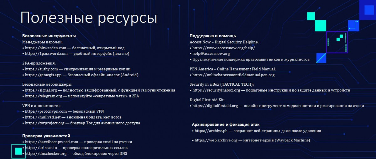 Ақпараттық қауіпсіздік маманы Артем Тарасовтың айтуынша, бұл пайдалы сілтемелер адамдарға өз деректерін қорғауды үйренуге, интернеттегі алаяқтық əрекеттен сақтануға көмектеседі.