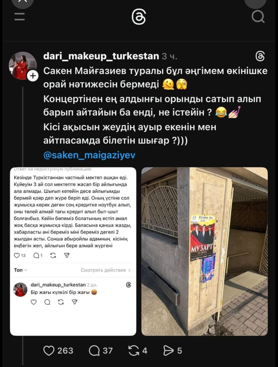 Дегенмен Threads қолданушылары бұл уәделерге күмәнмен қарап, әншінің әлеуметтік желідегі жазбаларының астына еңбек ақыны қайтаруды талап еткен пікірлер қалдырып жатыр.