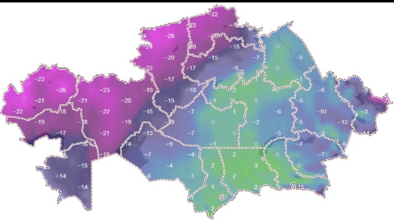Алматы, Жетісу облыстарында ауа температурасы күндіз 0-5, облыстың солтүстігінде, шығысында, таулы аудандарында 8-13 градус аязға дейін күрт төмендейді.