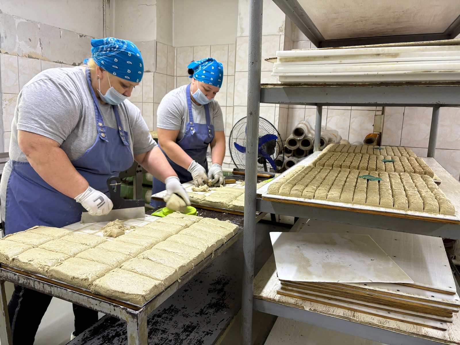 Цехқа кірген бетте-ақ халваның хош иісі танауды жарды. Балалық шақты неге еске түсіреді десек, халва түрлері әлі күнге дейін кеңестік кездегі құраммен дайындалады. Технологтер де тәжірибелі. Мәселен, Елена Ищенко бұл салада ұзақ жыл қызмет етеді. Басты мақсат – халва дәмін бұрынғы қалпында сақтау. Ол бұл істі өзі үйреніп, кәсіпорындағы халва өндірісін жолға қойған. Қазір мұнда табиғи қоспалармен, престеу және сұрыптау әдістерімен түрлі тәжірибе жүргізіледі. Әсіресе конфет секілді халва мен үлпілдек түрі ерекше сұранысқа ие.