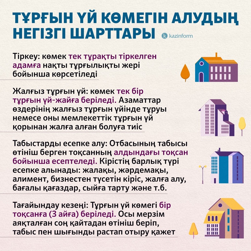 Тұрғын үй көмегін өзінің жалғыз тұрғын үйінде тұратын немесе мемлекеттік тұрғын үй қорынан жалға алған азаматтар ала алады.
