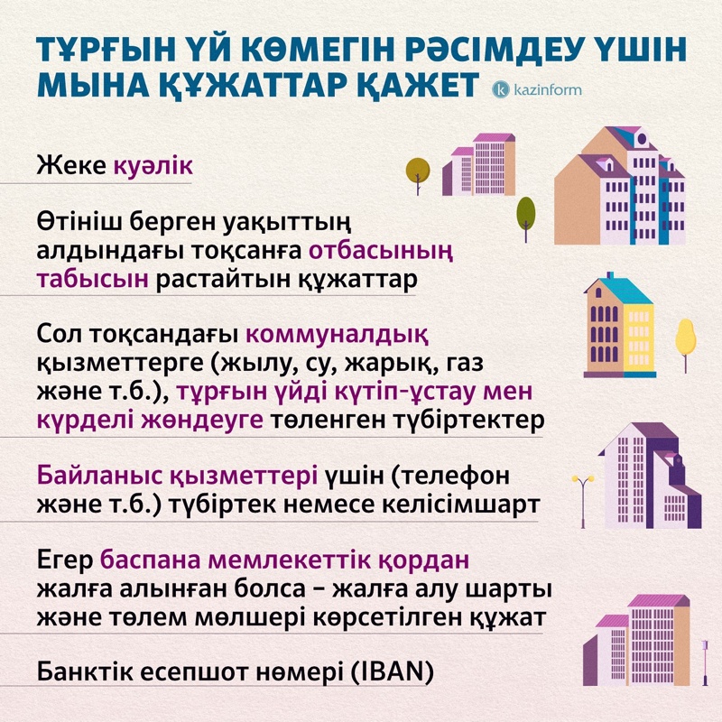 Тұрғын үй көмегін рәсімдеу үшін мыналар қажет: