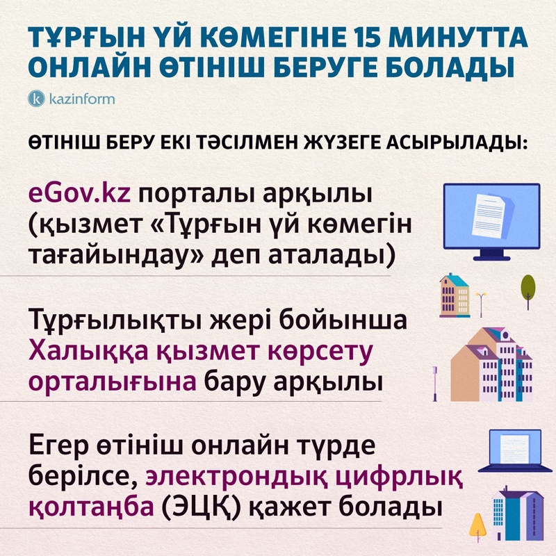 Тұрғын үй көмегі: 15 минутта онлайн өтініш беруге болады