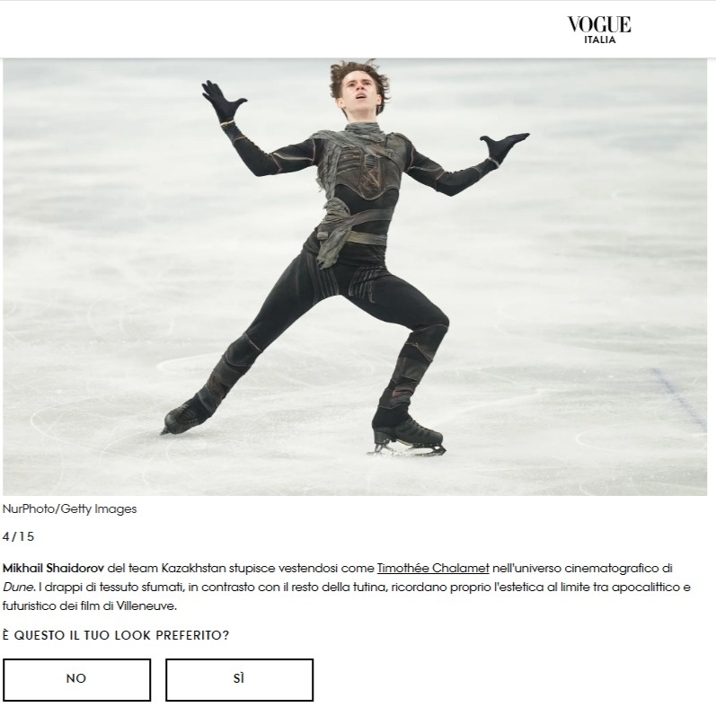 Сонымен қатар Михаил Шайдоровтың костюмін Vogue Italia журналы жоғары бағалаған еді.