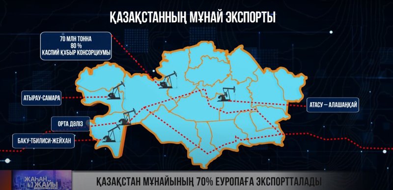 Елімізге жаңа кен орындары қажетҚазақстан мұнайының 70 пайыздан астамы экспортталады. Негізгі бағыт – Каспий құбыр консорциумы арқылы Ресейдің Новороссийск портындағы Қара теңізге жөнелтіледі, мұнай экспортының 80 пайызы осы жолмен жүзеге асады. Сонымен қатар Атырау-Самара, Баку-Тбилиси-Жейхан және Орта дәліз бағыттары пайдаланылады. Қазір Қазақстан-Қытай мұнай құбыры арқылы да экспорт көлемі артып келеді.