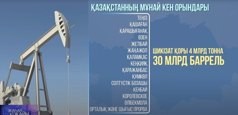 Болжам бойынша, Қазақстандағы мұнай қоры 4 миллиард тоннадан асады, яғни ол шамамен 30 миллиард баррельге тең. Елдегі негізгі мұнай-газ кен орындары – Теңіз, Қарашығанақ және Қашаған. Бұл үш ірі кен орнында жалпы мұнайдың 70 пайыздан астамы өндіріледі. 2024 жылы Қазақстанда 90 миллион тонна мұнай өндірілді. Қазір ел аумағында 172 кен орны тіркелген, оның ішінде 80-ге жуығы әлі толық игерілмеген.
