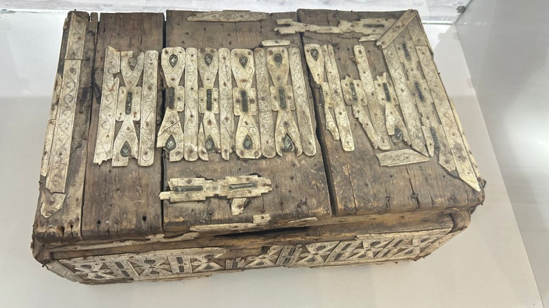 Музейдің құнды экспонаты — сүйекпен көмкерілген домбыра мен шай сандық және Құран кітаптары