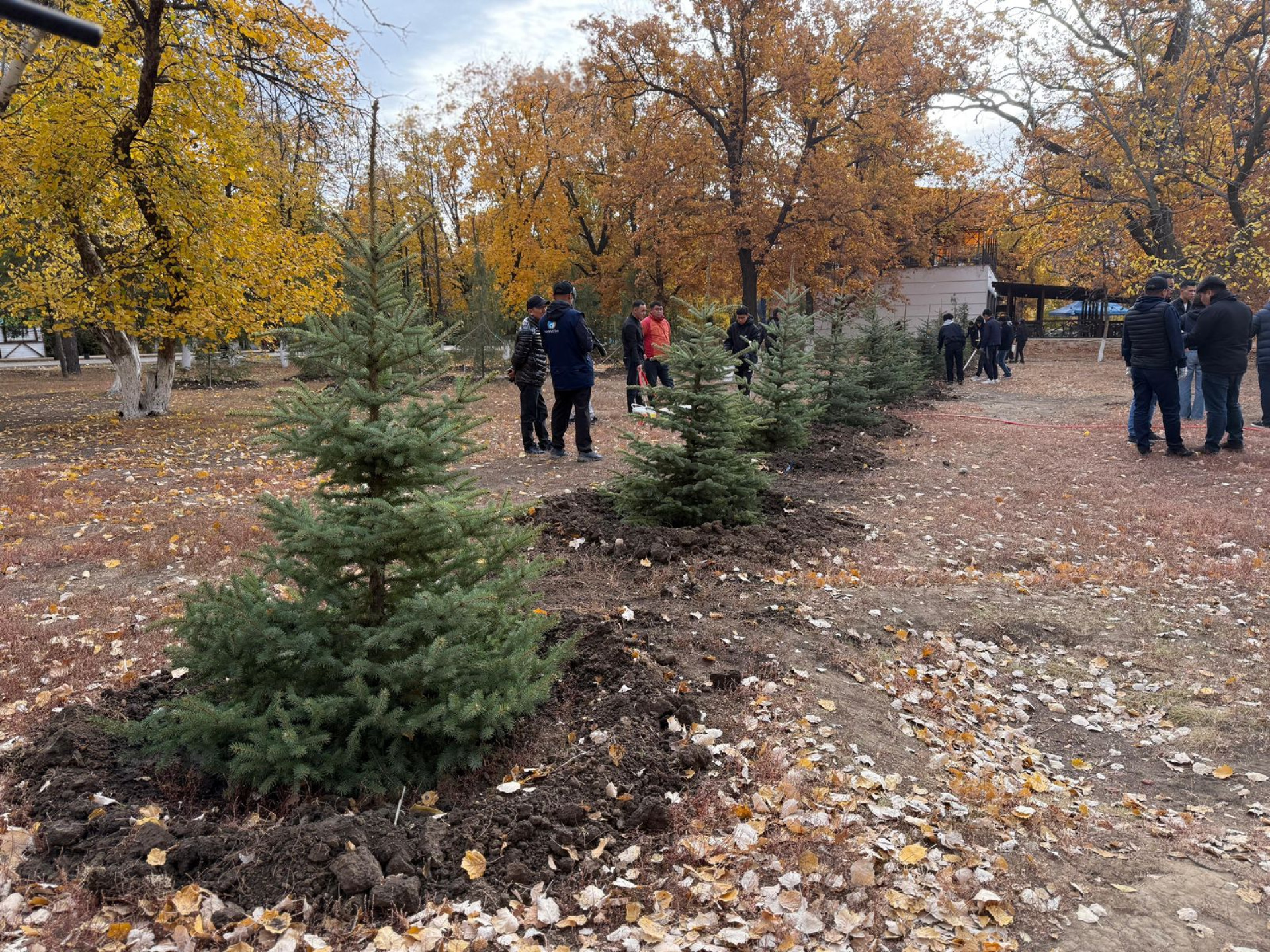 Шаһардың мәдениет және демалыс саябағында, Шаған өзенінің жағалауында жапырақты және қылқан жапырақты ағаш түрлерінен 50 түп көшет отырғызылды.