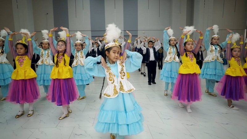 «Би - жүректің үні, ұлттың рухы» атты флешмоб аясында оқушылар «Қара жорға» биін бір мезетте билеп, көрермендерге әсерлі көрініс сыйлады.