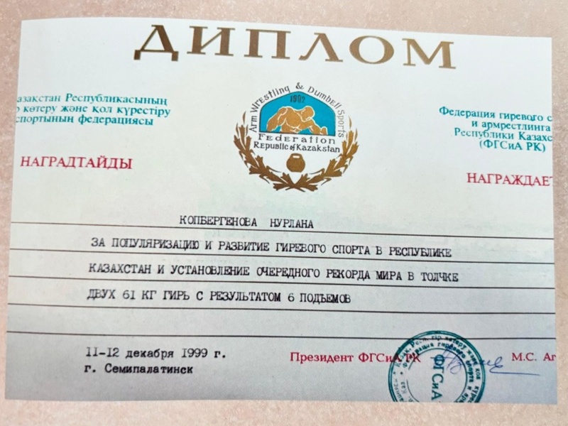 Ал 2007 жылы 62 килограмдық гір тасын 10 рет көтеріп, тағы бір рекордтық көрсеткіш тіркеді. Олардың алдында 1998 жылдың қыркүйек айында Астана қаласының тұсаукесер рәсімінде әрбірі 52 килограмдық екі гір тасын бір минутта 14 рет көтерген болатын.