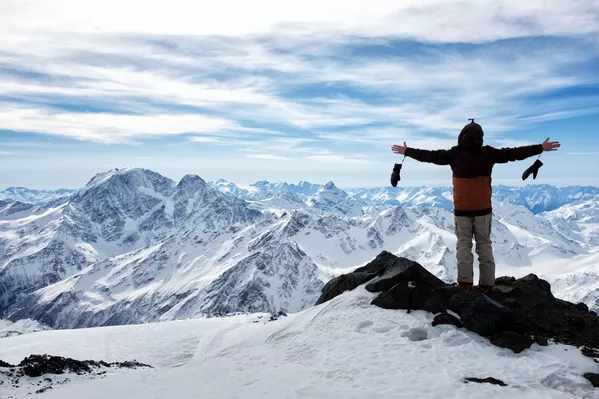 Кабардино-Балкариядағы Эльбурс тауының 4400 биіктігіне шыққан турист.