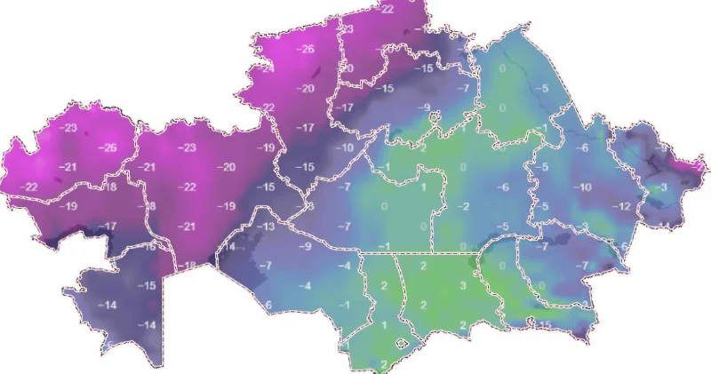 Ақтөбеде түнде -23…-25°С болуы мүмкін. Петропавлда түнде -20…-22°С, күндіз -15…-17°С күтіледі. Көкшетауда түнде -18…-20°С болжанып отыр.7 ақпанда аяз Ақмола облысында, сондай-ақ, Ұлытау, Қарағанды және Павлодар облыстарында күшейеді. Астанада түнде -18…-20°С болады деп күтіледі.