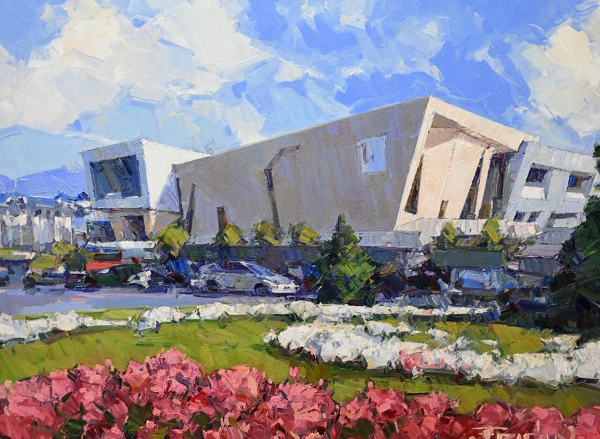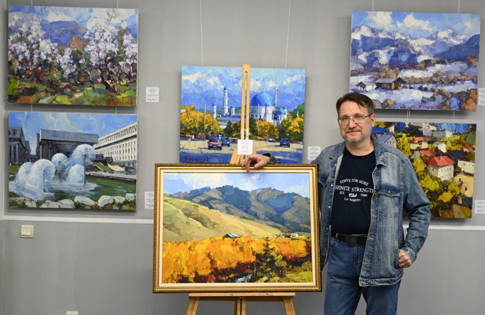 Қандай тақырыпты нысанаға алса да жанымен жазатын павлодарлық суретші бұл жолы мыңбояулы мегаполистің тыныс-тіршілігін қылқаламға арқау еткен. «U2 немесе Әл-Фараби даңғылындағы серуен» деп аталған көрмеде Алматы пейзаждары алма-кезек алдыңнан шығады. Кенепте алма шаһардың күнделікті беймаза тіршілігі былай қалып, жаныңды шуаққа бөлейтін әсем көріністер көз алдыңнан тізбектеліп өтеді.