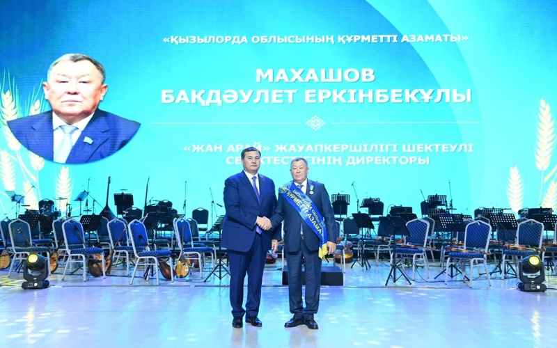 Мерекелік шарада Қызылорда облысының әлеуметтік-экономикалық дамуына елеулі үлес қосқан азаматтар марапатталды. «Жан Арай» жауапкершілігі шектеулі серіктестігінің директоры Бақдәулет Махашовқа «Қызылорда облысының құрметті азаматы» атағы берілді. Ол басқаратын серіктестік тәулігіне 80 тонна құрама жем өндіру, күріш өңдеу зауыттарын іске қосқан, өнімдерін экспортқа шығарады. Өткен жылы 4 мың тонналық көкөніс сақтау қоймасын ашып, 100-ден астам адамды тұрақты жұмыспен қамтыды.