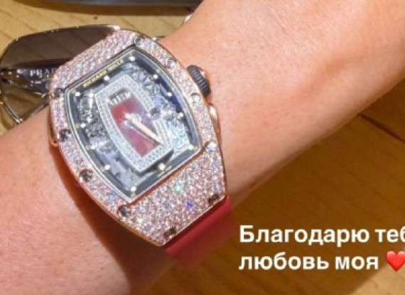 Продюсерге күйеуі, кәсіпкер Тұрсынғали Алагөзов ең сәнді әрі қымбат брендтердің бірінен бағалы сағат сыйға тартқан.