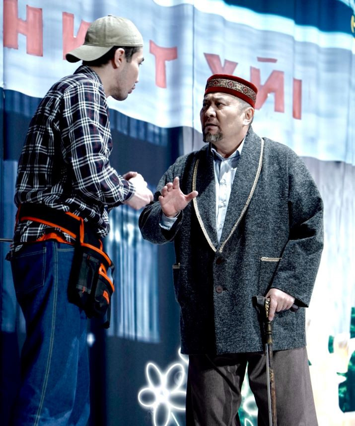 Дәл осы шығарма желісімен жақында Қалибек Қуанышбаев атындағы Қазақ ұлттық музыкалық драма театры комедияның премьерасын қойды. Күлдіру үшін емес, күлкі арқылы көрерменді оятуға бағытталған қойылымды біз де тамашалап қайттық. Қойылым барысында қоғамдағы өзекті мәселелер – ұлттық құндылықтардың әлсіреуі, салт-дәстүрдің мәнін жоғалтуы, тіл мен ұлттық болмысқа деген немқұрайдылық секілді тақырыптар астарлы юмормен жеткізіледі.